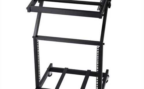 Product DetailsShippingReturnPaymentFeatures: 9U rack spaces,19″(48CM)Rack mount Equipment stand Two side knobs allow angle adjustment of the top rackmountable mixer platform Slanted/adjustable top mixer platform mount High-quality casters for mobility All steel construction Offer a range of height settings for playing comfort,prefer to play sitting or standing up Four poles onto the top of the stand and base help to hold the Mixer which cann’t be installed on the standSpecifications: Height Range: 93-112.5CM Top Frame Dimension(WxD): 58.2cm*53.2cm Base Frame Dimensions(WxD): 53cm*50cm Gross Weight: 10KGPackage Contents: 1x 9U Professional DJ Stand