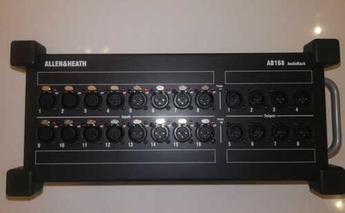 Bought for a project that fell through. Never used, just sat on the shelf.AB168 is a portable remote AudioRack for use with the Allen & Heath GLD and Qu series in live and installation settings. Featuring 16 mic preamps with Phantom Power indicators and 8 XLR line outs, AB168 runs on Allen & Heaths proprietary dSNAKE protocol and is compatible with both the Qu and GLD ranges. Adding an AB168 to a Qu or GLD system allows some or all I/O to be positioned up to 120m from the mixer. The unit connects over a single Cat5 cable to the Qu/GLD mixer or AR2412 AudioRack via a secure dSNAKE EtherCon port. A second EtherCon port is provided for daisy-chaining to another AB168 box or connection of a ME personal mixing system. AB168 auto updates its firmware to synchronise with the system. The racks rugged design, including rubber bumpers, renders it highly roadworthy and allows it to be placed on the stage floor during performances. Weighing in at just 4.8kg and featuring a sturdy carry handle, AB168 is also designed for maximum convenience and portability. An optional rack mounting kit is also available.16 Mic Preamps on XLRCompatible with GLD and QuPhantom Power LED per Input8 XLR Line OutsdSNAKE Connection with locking Ethercon portAdditional locking Ethercon port for daisy chaining / ME personal mixing systemRubber bumpersCarry handleOptional rack mount kit available