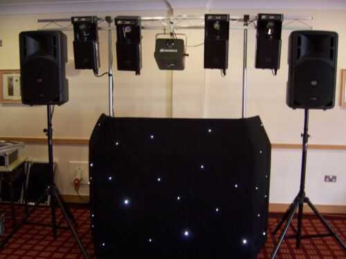 Equipment list.Deckstand Booth AND star cloth with controller.Overhead lighting bar for Deckstand booth.Pioneer CDJ 1000mk3 X2 (flight cased)RCF 522 active speaker x2 (protective cases)DB Technologies 12 active subwoofer (protective case)2 x speaker stands (carry bag)MAD scan X2 (Cased)MAD spin x2 (cased)MAD Power flower MAD lighting controller. Smoke/fog machine+lots more.