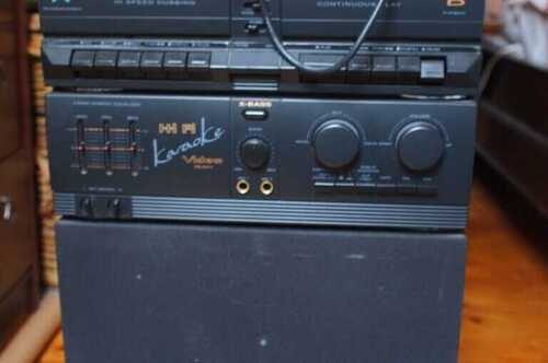 Fully working Original 80s Karaoke machine with two cassette decks with recording function, radio and two microphones. In great condition. Comes party-ready with six tapes and song lyrics in the style of Whitney Houston, Frank Sinatra, Everly Brothers, ABBA and more.