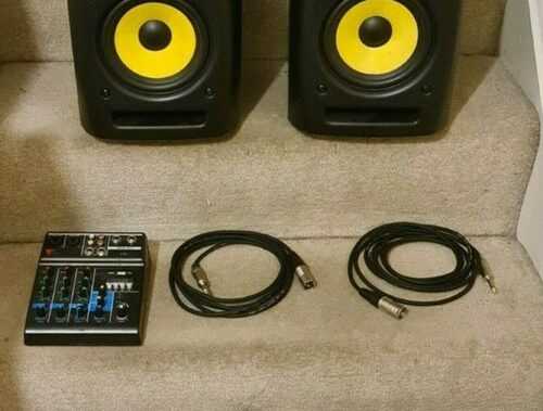 KRK Rokit 6 studio monitors, leads and audio interface