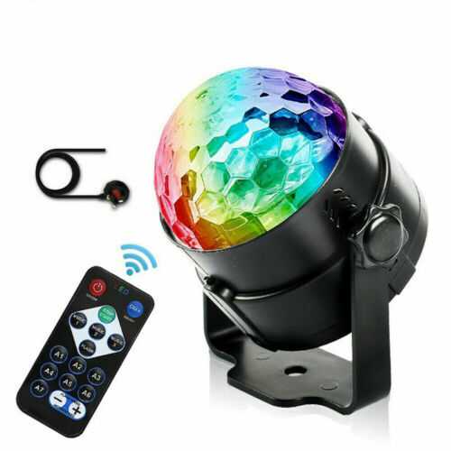 Product DescriptionLight SourceLED – StandardTypeLED Stage LightMPNDoes Not ApplyBrandUnbrandedMaterialPlasticColourRGB with multi-patternsPattern15 PatternsProduct ColorBlackLED ColorRed, Green, Blue, RGBBeam angle150 degreeDisco Lights ControlRemote Control / self-propelled / StrobeFrequency50 ~ 60HzWork ModeAuto /Voice (automatic identification) /Remote ControlPower3WModelLED crystal magic ball MotionManual Pan & TiltControlManualLighting EffectsBeamDmx ControlNoManufacturer warranty1 yearCountry/Region of ManufactureChinaEANDoes not applyFeatures: * Remote control is convenient to control the lights * Increase romantic atmosphere. * It is easy to control the switch, and the light changes the lights with the rhythm of the music — slow change, rapid change, and flicker.* Plug in and turn on, then watching your garden or house it will be instantly saturated in gorgeous green, red and blue lights. * Perfect for creating a festival atmosphere for any garden, exterior surface, or interior room. * Easy, Safe and Cost-effective: Never again go through the trouble of unwrapping and hanging individual strands of Christmas lights. * Simply place this light in the ground outside or on the floor inside and enjoy festive year-round energy-efficient lights that never need replacing. * Use it for any parties (birthdays, pool, disco, dance ) Holiday, Wedding, Christmas, Karaoke, DJ…also could use it for indoor & outdoor (light up to 15 feets), backyard, bedroom, living room and more.