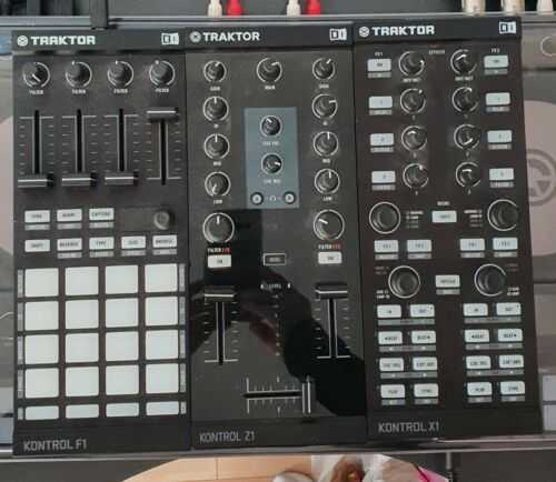 Native Instruments Traktor Kontrol X1. F1, X2 MK2 DJ Controller package. Condition is “Used”. Dispatched with Royal Mail 1st Class.Much loved controllers,  not required due to upgrading. All in top working condition. No faults and well looked after.Items are NOT in original boxes but USB leads are included. No software included. Brand new this package would be worth over £450F1:The perfect way to take control of Traktor Pro 2.6’s innovative Remix DecksA powerful tool that lets you fuse the worlds of traditional DJing and controllerism in your live performances16 bright RGB multi-color pads provide you with intuitive visual feedback for your Remix DecksA fun way to trigger and arrange loops and samples on the flyStore your own Remix Sets for instant recallCapture live loops from running track decks for immediate remixingExport loops from your productions and load them up for live performance in Traktor Pro 2.6Route individual Remix Deck slots through Traktor’s assigned FX unitTraktor Pro 2.6 instantly recognizes the Traktor Kontrol F1 hardware, providing you with real plug-and-play operationUse up to four F1s or combine with other DJ controllers such as Native Instruments’ Traktor Kontrol X1Designed to integrate with Maschine, making it easy to export your projects into Traktor Pro 2 Remix DecksZ1:The ideal mixer for a portable TRAKTOR system with premium soundCombined with TRAKTOR DJ, the iPad or iPhone becomes a 2-deck, full-function DJ setup with tactile controlMix and EQ using physical faders and knobsApply filters and effects with one intuitive sweep knobPremium 24-bit soundcard with high-output stereo master output and low-latency headphone cueDedicated mixer with 3-band EQ, gain, filter, and pre-listen control for each channelPro-quality, precision knobs and faders, and high-visibility backlit buttons and metersX1 MK1:New multi-purpose touch strip keeps you in direct control without ever having to reach for your turntable or CDJAdvanced, touch-sensitive browser and loop controls deliver ultimate performance possibilitiesNew RGB cue point trigger buttons help to visually identify cue points from loops or load markersControl 2 track decks and 2 freely assignable TRAKTOR FX unitsPlug and play – instantly automaps to TRAKTORInnovative new touch strip delivers ultra-precise control over track position, pitchbend, and FXPrecision buttons, knobs and touch-sensitive encoders deliver ultimate controlLightweight, robust housing with slim, ultra-portable form factor – fits perfectly next to a club mixerExpandable – connect 2 TRAKTOR KONTROL X1s to control up to 4 decks
