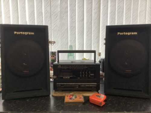 Portogram Michael Schumacher Interlocking PA Speakers Pair , Magnat S203 ,. Condition is “Used”. , very nice speakers, lock together , jack input as shown , I made 2 leads to test , the sound good on 1 of my old boom boxes , see all photos, not sure of the music power , age or if original as you see them had a look inside to do photos for listing , seem well made and all fit together nice , will include the 2 home made leads, uk only post , see all photos for size , last photo shows a bit of plastic damage on handle ,