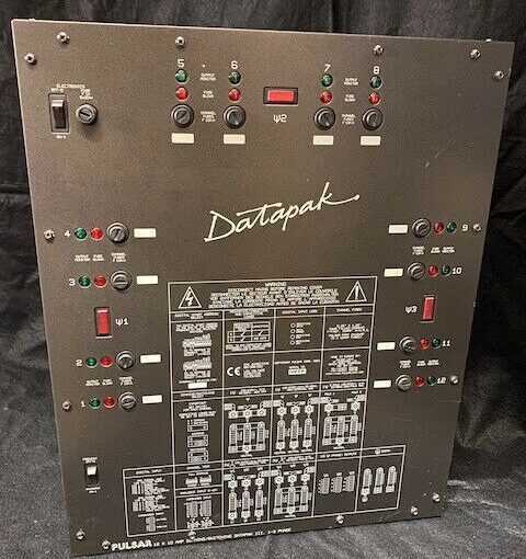 Pulsar Data Pak III Stage Lighting Dimmer 12x10A Hardwired DMX Installation dimmer removed from a school so it has not had a hard life. The Datapak III is a Dimming / Switching Datapak which is capable of dimming or switching resistive and inductive loads. See data sheet for full details http://pulsarlight.com/wp-content/uploads/Instructions/Legacy/DATAPAK3-11-01-2011.pdf Functionally tested the dimmer part of the unit via DMX and all channels dim (analogue not tested).