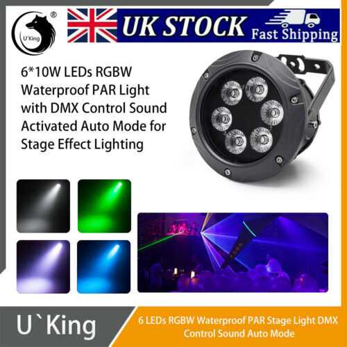Specifications:Brand: U`KingWaterproof Par Light: P65Energy consumption: 100WOperating voltage: 110 – 240V AC 50/60HzProduct material: cast aluminum shell, constant temperature and constant pressureShell color: blackLamp type: LED RGBW 4-in-1Number of beads: 6*10w RGBWLamp effect: four in one LED lamp beadsLens angle: 45°Control mode: automatic,sound activated control, DMX 512, master-slave synchronization, standard DMX 512 controller controlUse channel: 4/8 channelColor dimming: red, green, blue, white, automatic gradient dimmingBeam angle: 45°, LED digital display, advanced optical lens, excellent color mixing.Service life: 50,000 hours of service life, low power consumptionWorking temperature: -25 degrees to +35 degreesCooling method: temperature control, constant current temperature controlScope of application: outdoor performance waterproof, outdoor lighting, lawn, courtyard, etc……..