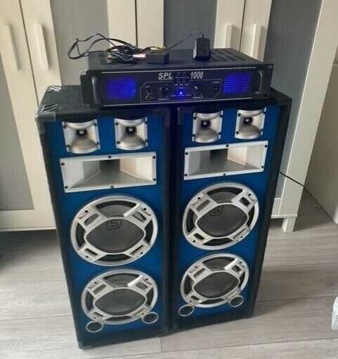 SPL 1000W Skytec Amplifier with 800W Speakes – Hi-Fi Stereo DJ Disco Party. Condition is “Used”.