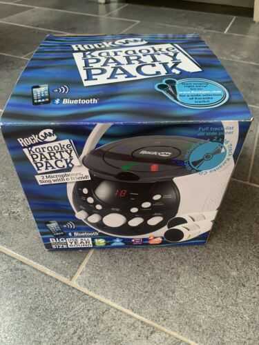 White Rock Jam Karaoke Party Machine with multi colour light show. Comes with 2 microphones and 2 CDs. Can connect to TV to view lyrics and graphics, can also Bluetooth music to it. Hardly used. Great condition, fully working.Purchased for 69.99